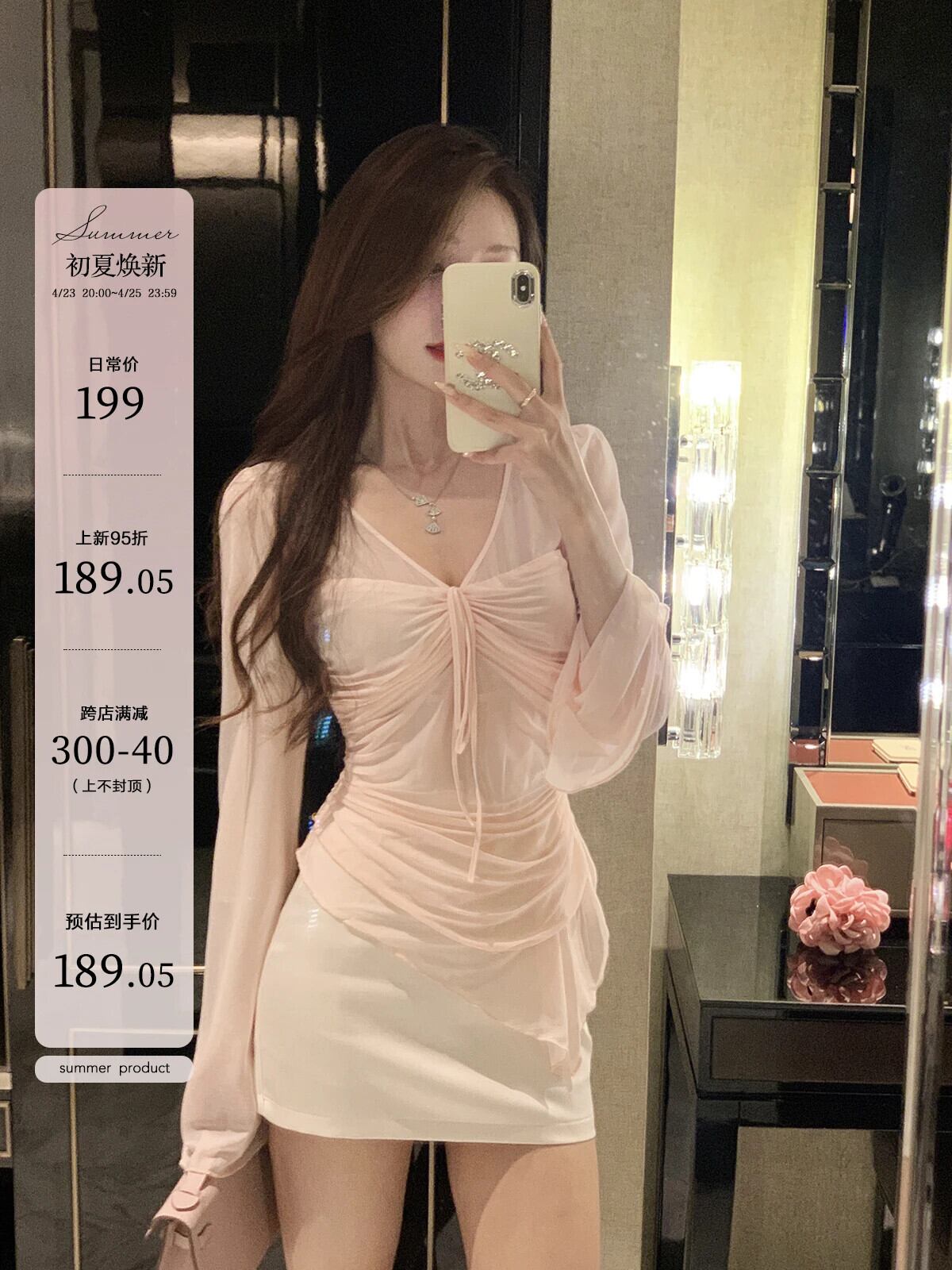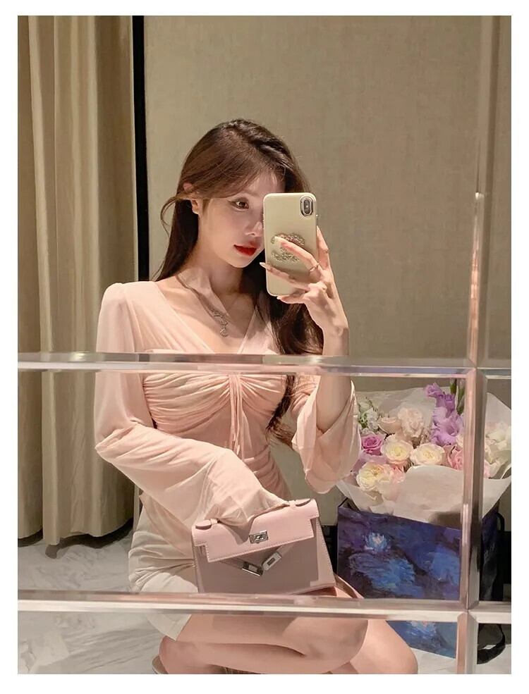 Awarose 2024 夏薄いシャーリングストラップ黒ピンクセクシースリム V ネックトップベル袖非対称ブラウス ブラック ベルスリーブ サマー 夏物 Vネック