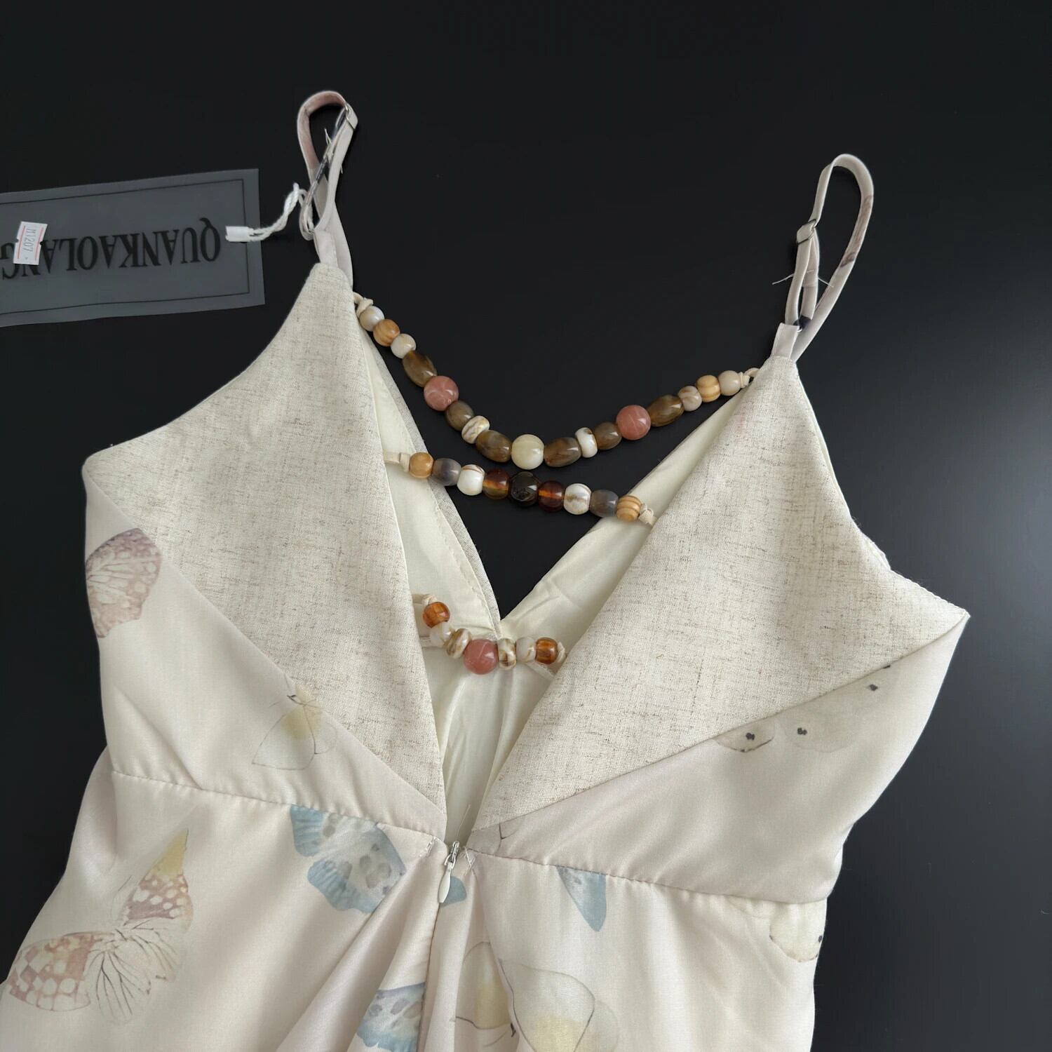 中国風セクシー背中開いたフライングスリーブプリントフリルドレス夏シフォンウエストAラインサスペンダーロングドレスパーティー サマー 夏物