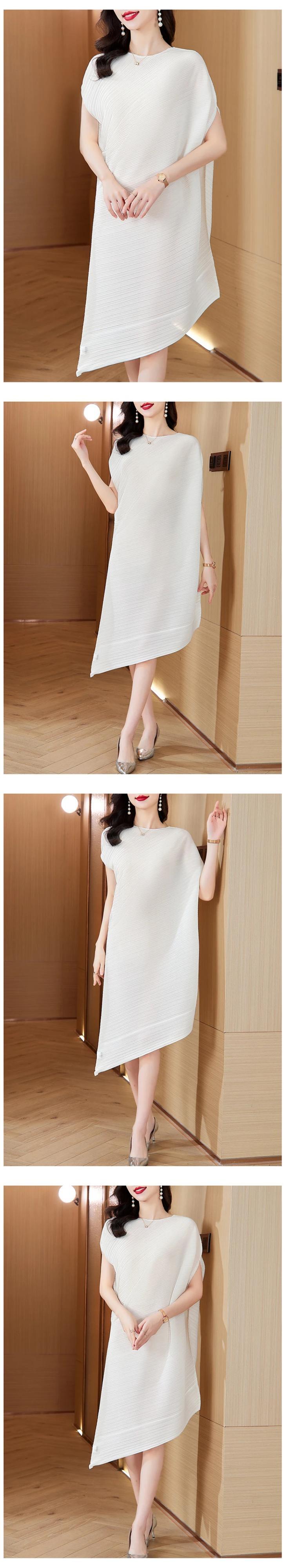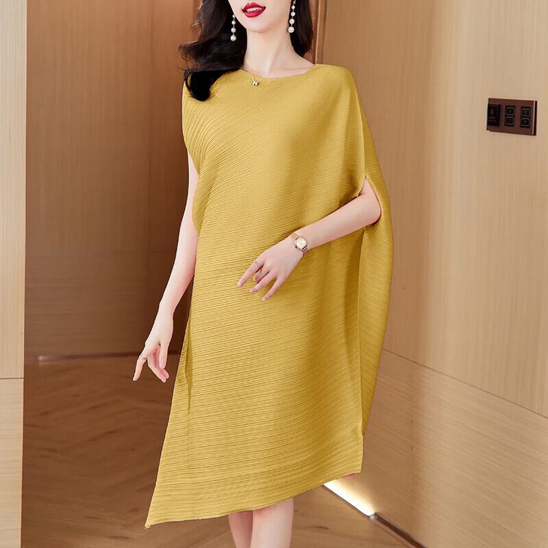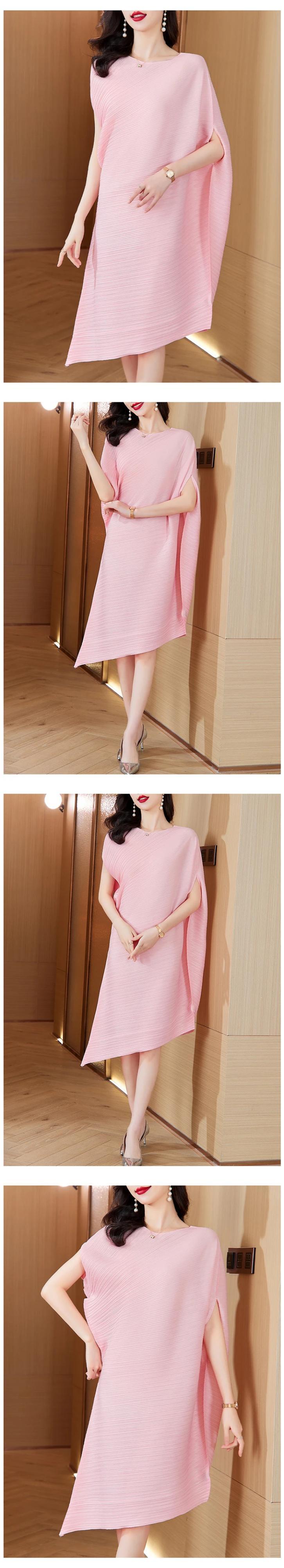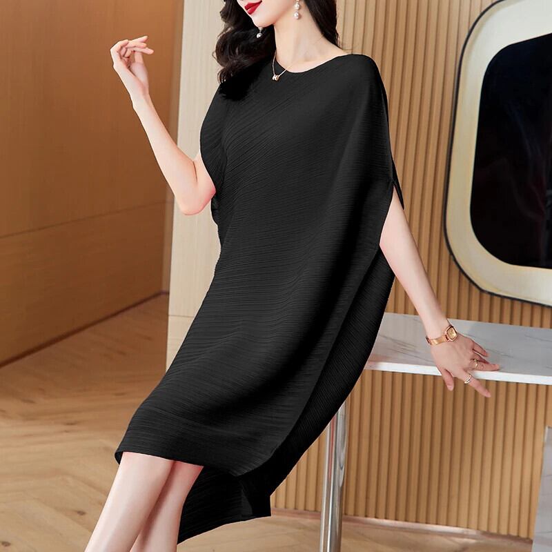 三宅プリーツ Tシャツ レディース 夏 ソリッドカラー バットウィング スリーブ 不規則 ゆったり 万能 スリット Tシャツ ワンピース サマー 夏物